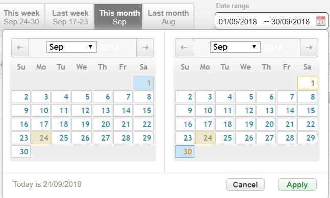 Set the desired date range in the pop-up calendar: