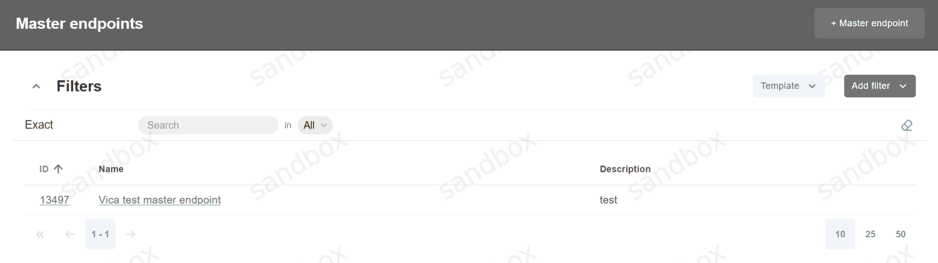Click on the To details button to view Master Endpoint itself (filters, payment form, name and etc).