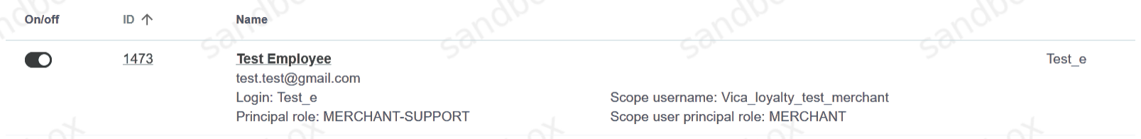 This employee is the same as reseller-support, has access to some actions with transactions and transaction markers, but no access to Integration panel |